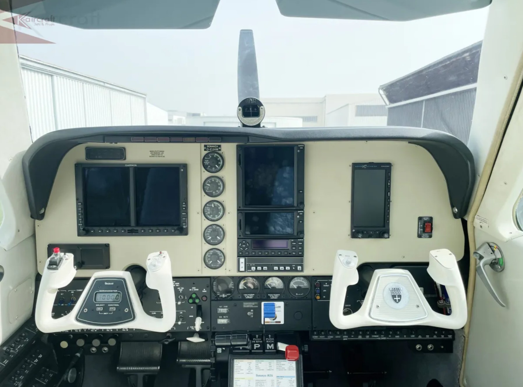 - In later years, the aircraft received a significant avionics modernization including a Garmin glass cockpit upgrade with a Garmin G500 display system and GTN-series touchscreen navigators, providing modern navigation capability and enhanced situational awareness for cross-country and IFR operations.
